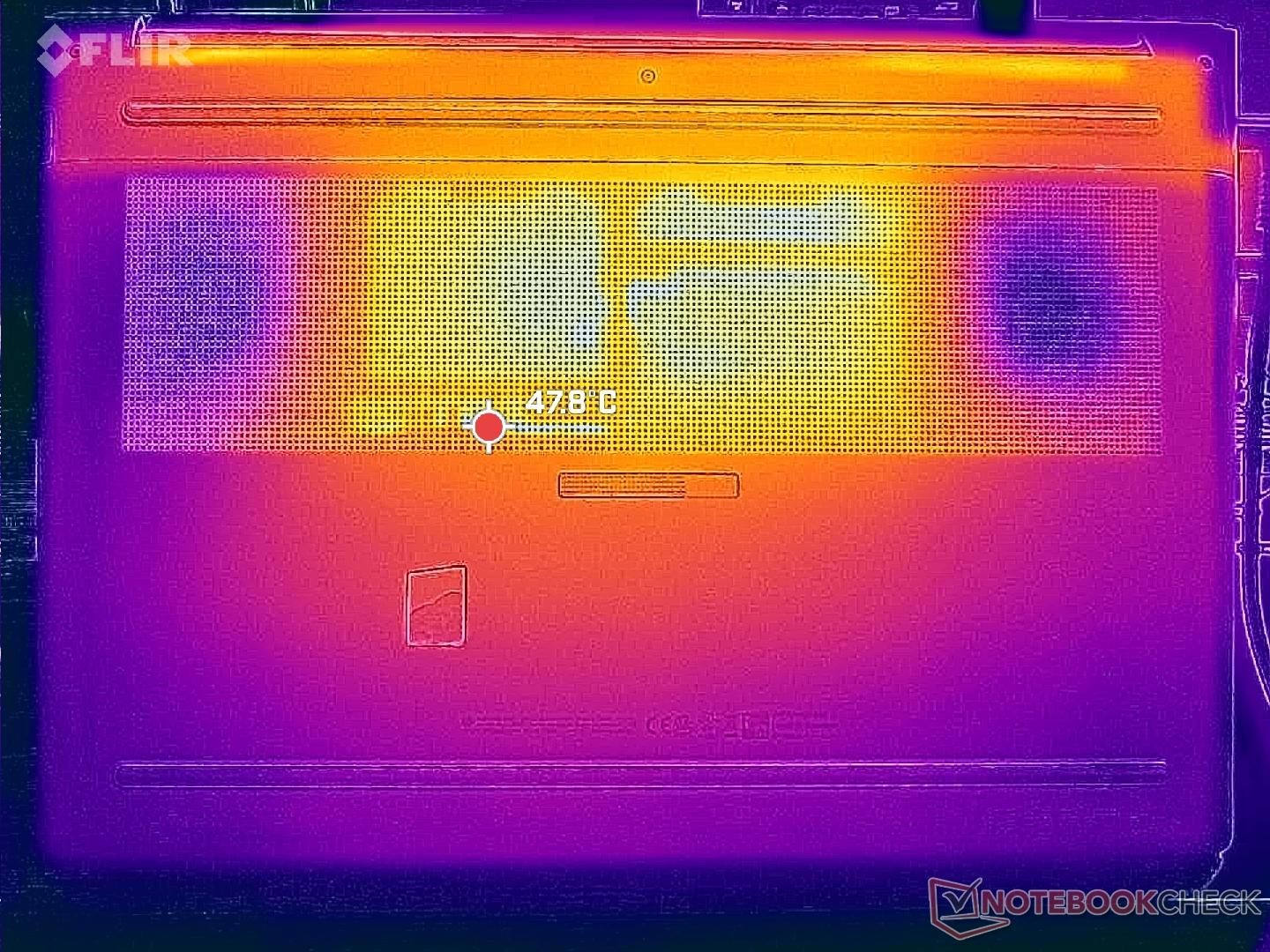 (-) El fondo se calienta hasta un máximo de 48 °C / 118 F, frente a la media de 41.1 °C / 106 F
