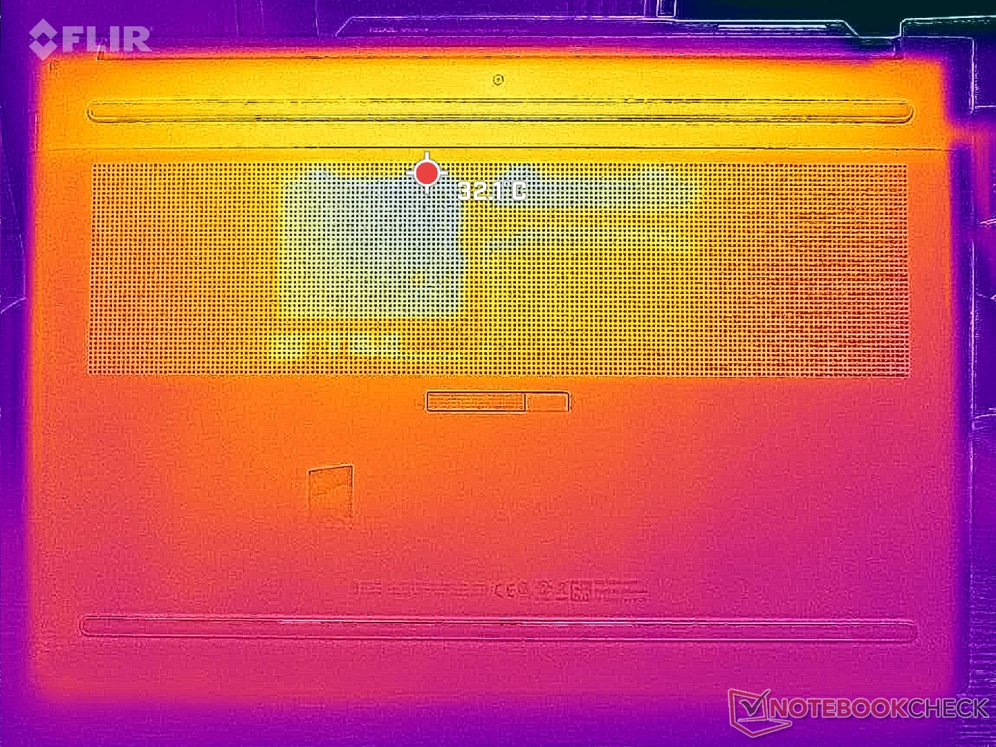 (-) 3: The average temperature for the upper side is 38.5 °C / 101 F, compared to the average of 32 °C / 90 F for the class Workstation.