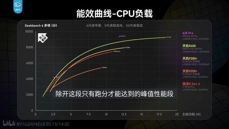 Según la evaluación del popular punto de revisión Geekerwan, el Dimensity 9400 del OPPO Find X8 Pro obtiene una puntuación de algo más de 9000 en la prueba multinúcleo de Geekbench 6, lo que supone una mejora de alrededor del 15% con respecto al Dimensity 9300+, pero se ve superado por poco por el A18 Pro en Apple. Sin embargo, el consumo de energía parece ser un pequeño problema, ya que el Dimensity 9400 consume más de 18 W, bastante más que los 12 W del A18 Pro.