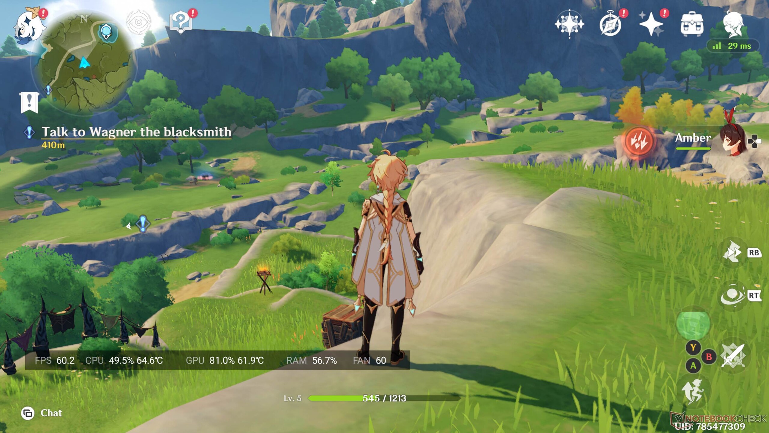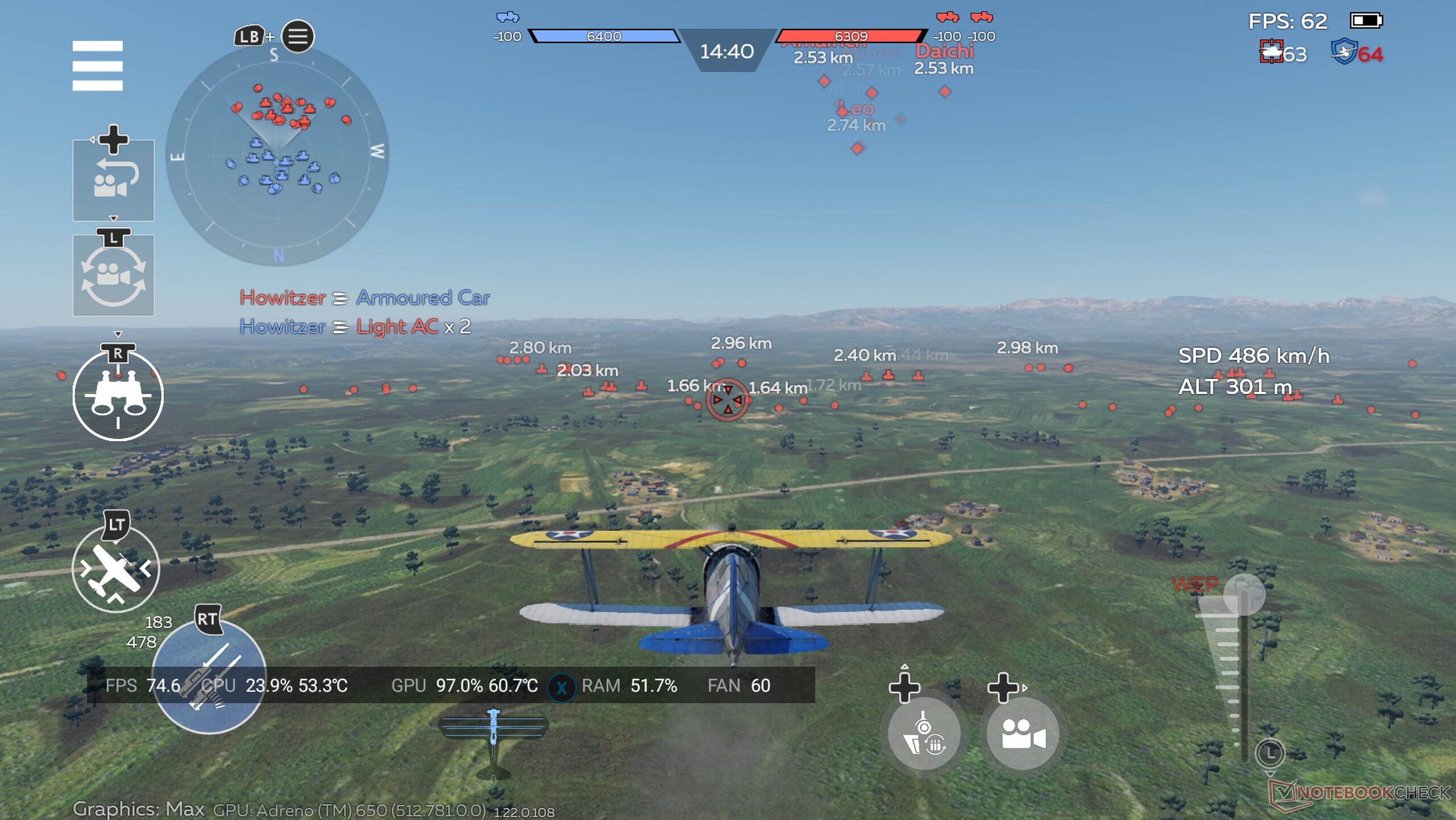 Utiliza el Qualcomm Snapdragon 865 y, por tanto, un chip informático que ya tiene más de seis años. Al final de este artículo encontrará una comparación de rendimiento con varios smartphones actuales y también con el Qualcomm Snapdragon 8 Gen 2 utilizado en el portal Odin2 para hacerse una idea del rendimiento del viejo SoC en 2026. Una cosa está clara: el Mangmi Pocket Max no puede renderizar localmente los actuales títulos triple A, pero también es más bien un dispositivo portátil Android o retro y no una alternativa a, por ejemplo, un Asus ROG Ally. No obstante, el Snapdragon 865 consigue acelerar con facilidad incluso títulos exigentes de Android con una jugabilidad de buena a excelente. En Genshin Impact, por ejemplo, se pueden conseguir unos estables 60 fotogramas por segundo con ajustes medios-altos - el título no admite más que esto en Android. En War Thunder Mobile, también se puede conseguir en todo momento una tasa de imágenes por segundo fluida en las batallas aéreas y terrestres con ajustes altos. La velocidad de fotogramas se beneficia naturalmente de la resolución de 1.920 × 1.080 píxeles, que es significativamente inferior a la de los smartphones actuales. Where Wind Meets, que también es gratuito y gráficamente bastante impresionante, también es fácil de jugar. El SoC alcanza sus límites con el preajuste Calidad, pero tuvimos una muy buena experiencia de juego con el preajuste Equilibrado. Positivo: Tampoco pudimos provocar ralentización en los benchmarks sintéticos. El ventilador es claramente audible a velocidad máxima. En nuestra experiencia, sin embargo, esto nunca es realmente necesario, ya que el control inteligente del ventilador parece ser un poco demasiado agresivo.