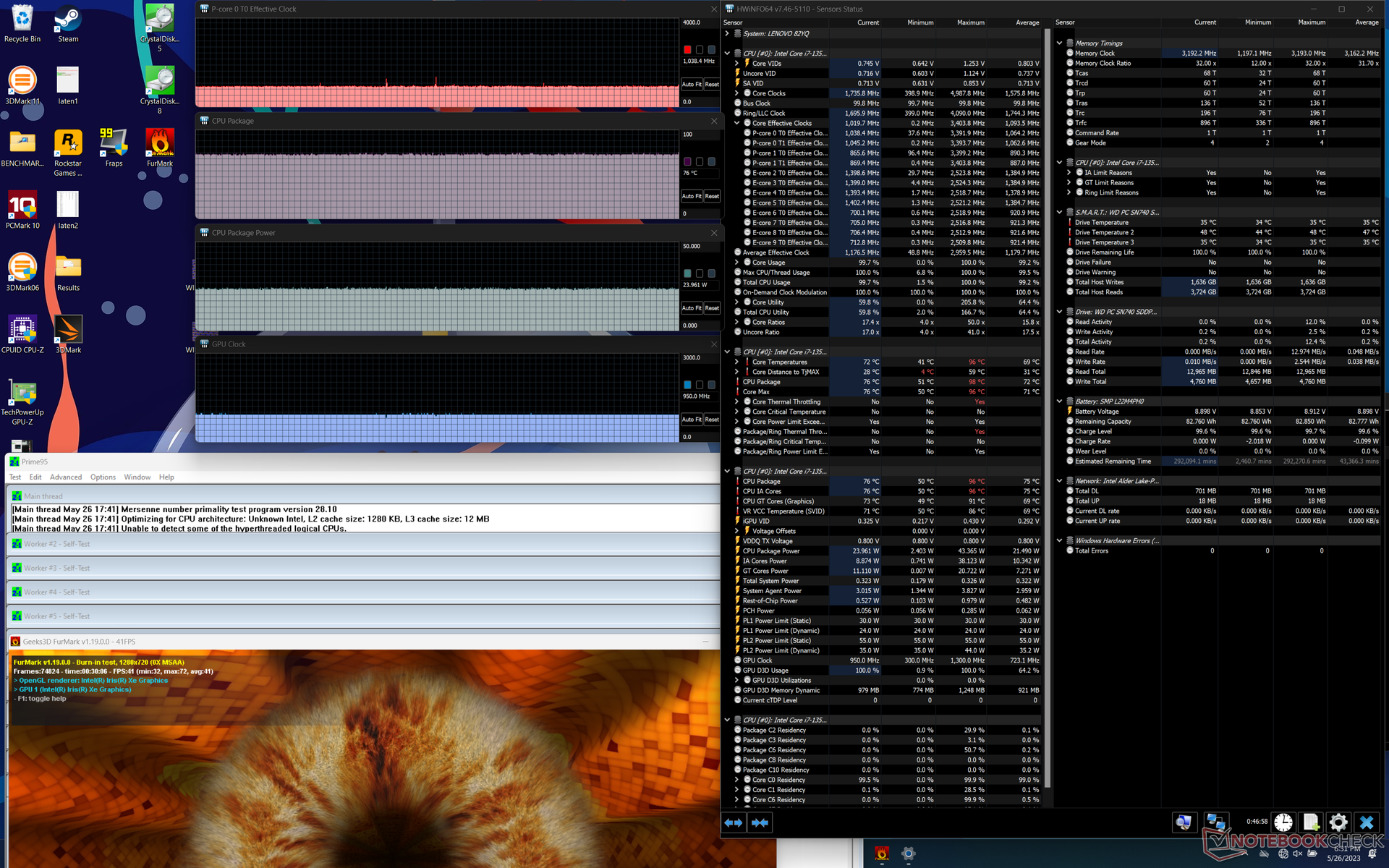| Prime95+ FurMark Stress | 1.0 | 950 | 76 |