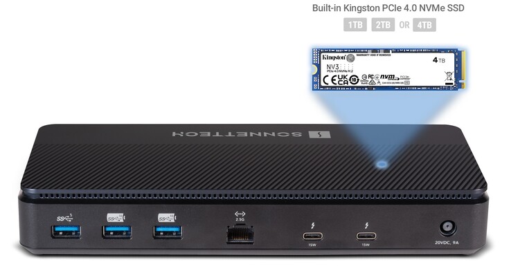 La característica más destacada de esta base Sonnet es la unidad SSD PCIe 4.0 NVMe integrada con hasta 4 TB de almacenamiento, que puede alcanzar velocidades de transferencia de hasta 6.100 MB/s cuando se conecta a través de Thunderbolt 5. A través de Thunderbolt 4 o USB 4, son posibles al menos 3.400 MB/s. También es bastante inusual que una estación de acoplamiento pueda cargar portátiles con hasta 140 vatios, lo que significa que incluso ciertos portátiles para juegos como el HP Omen Transcend 14 pueden disponer de potencia suficiente.