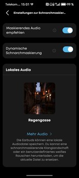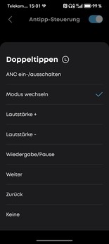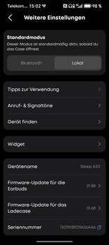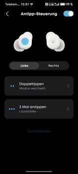 Los auriculares tienen algunos puntos débiles cuando se trata de llamadas telefónicas. En entornos silenciosos, la calidad es satisfactoria, pero el ruido de fondo puede oírse sin filtrar durante las conversaciones. Por cierto, la función de llamada está desactivada en los ajustes de fábrica y debe activarse primero a través de la aplicación.