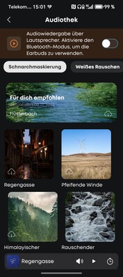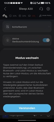 Dependiendo del modo, la duración de la batería es de entre 5 y 8 horas por carga. En el modo de sonido de reposo puro, sin Bluetooth, los auriculares alcanzan la mayor autonomía, ya que no es necesario el streaming. Con ANC y Bluetooth, el tiempo de reproducción disminuye ligeramente, pero sigue siendo suficiente para una noche normal. En nuestra prueba, esto significó que después de una noche (aprox. 8 horas), aún les quedaba un 20% de carga.