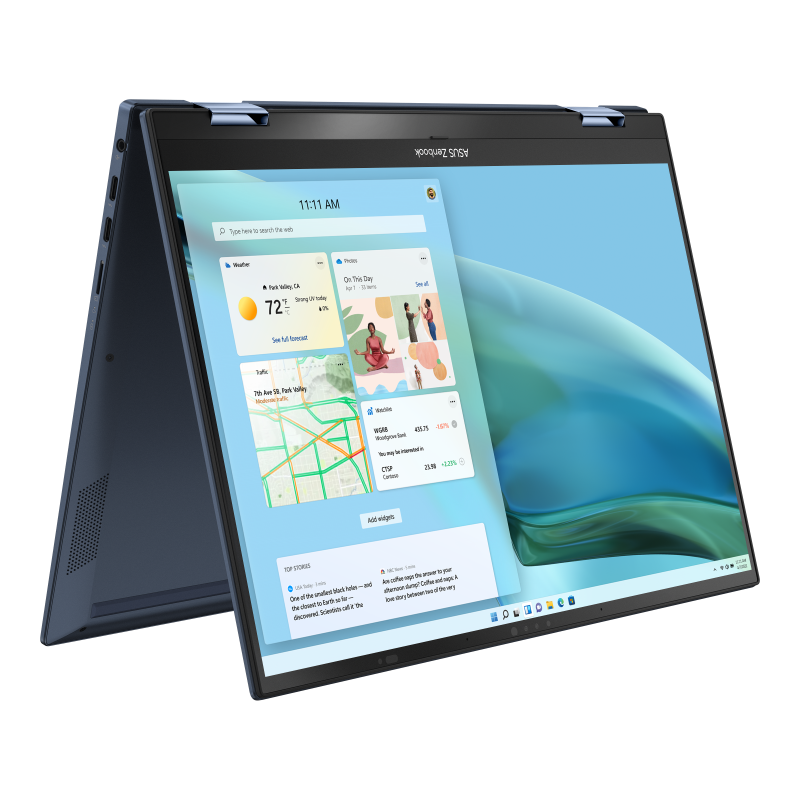 El Zenbook S 13 Flip OLED llegará a las tiendas en azul Ponder y blanco refinado en el tercer trimestre de 2022, a partir de 1.999 euros para el modelo básico.