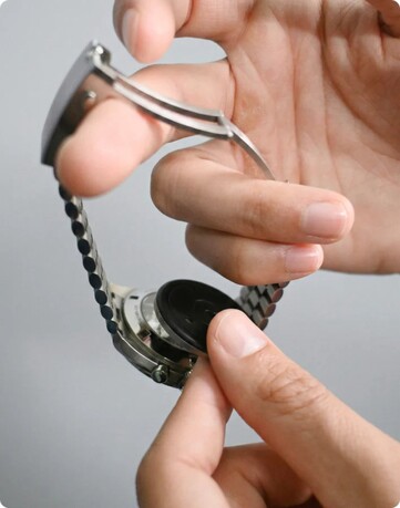 El fabricante subraya que para ello no se necesita ningún adhesivo, sino que se supone que el disco se "chupa" a sí mismo en la parte trasera del reloj a través de miles de canales de aire, lo que permite retirar el gadget sin dejar ningún residuo. El Heir ofrece entonces dos funciones principales. En primer lugar, un motor de vibración que avisa a los usuarios cuando llega una llamada o un mensaje al smartphone conectado