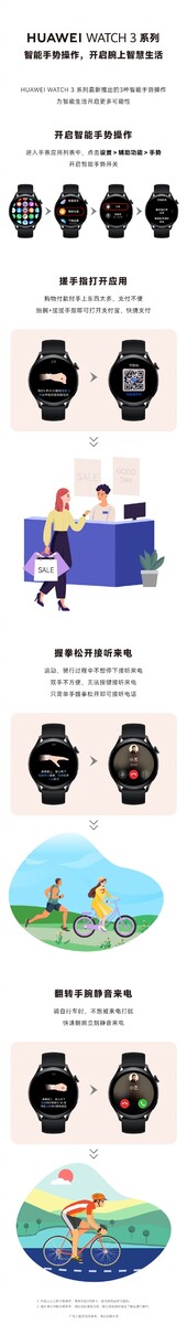 Al parecer, será posible levantar la muñeca para abrir AliPay, en lugar de tener que pulsar un botón o pasar por varias pantallas. Además, cerrar el puño y relajarlo permitirá aceptar una llamada telefónica. Del mismo modo, al girar la muñeca se silenciará una llamada telefónica activa.