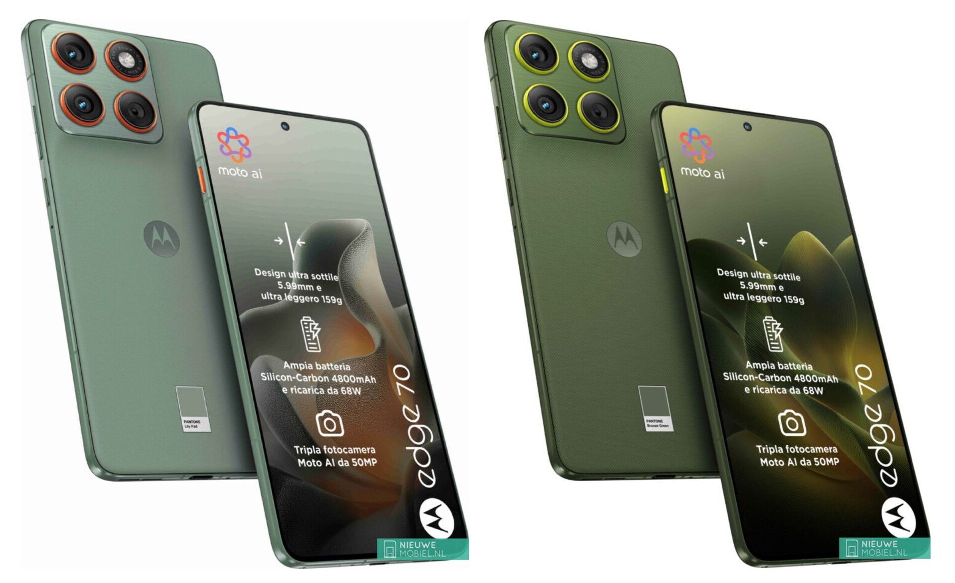Ahora, Nieuwe Mobiel ha obtenido más detalles sobre el Edge 70 antes de tiempo. Incrustadas a continuación, dos de las imágenes reiteran que Motorola tiene previsto ofrecer el Edge 70 en los mismos colores Pantone Bronze Green y Pantone Lily Pad opciones de color en las que el Moto X70 Air también se ha mostrado. Además, estas mismas imágenes destacan que el Edge 70 cuenta con una batería de 4.800 mAh a pesar de ser sólo ligeramente más grueso que el iPhone Air y Galaxy Edge S25 (actualmente 689 $ - usado en Amazon).