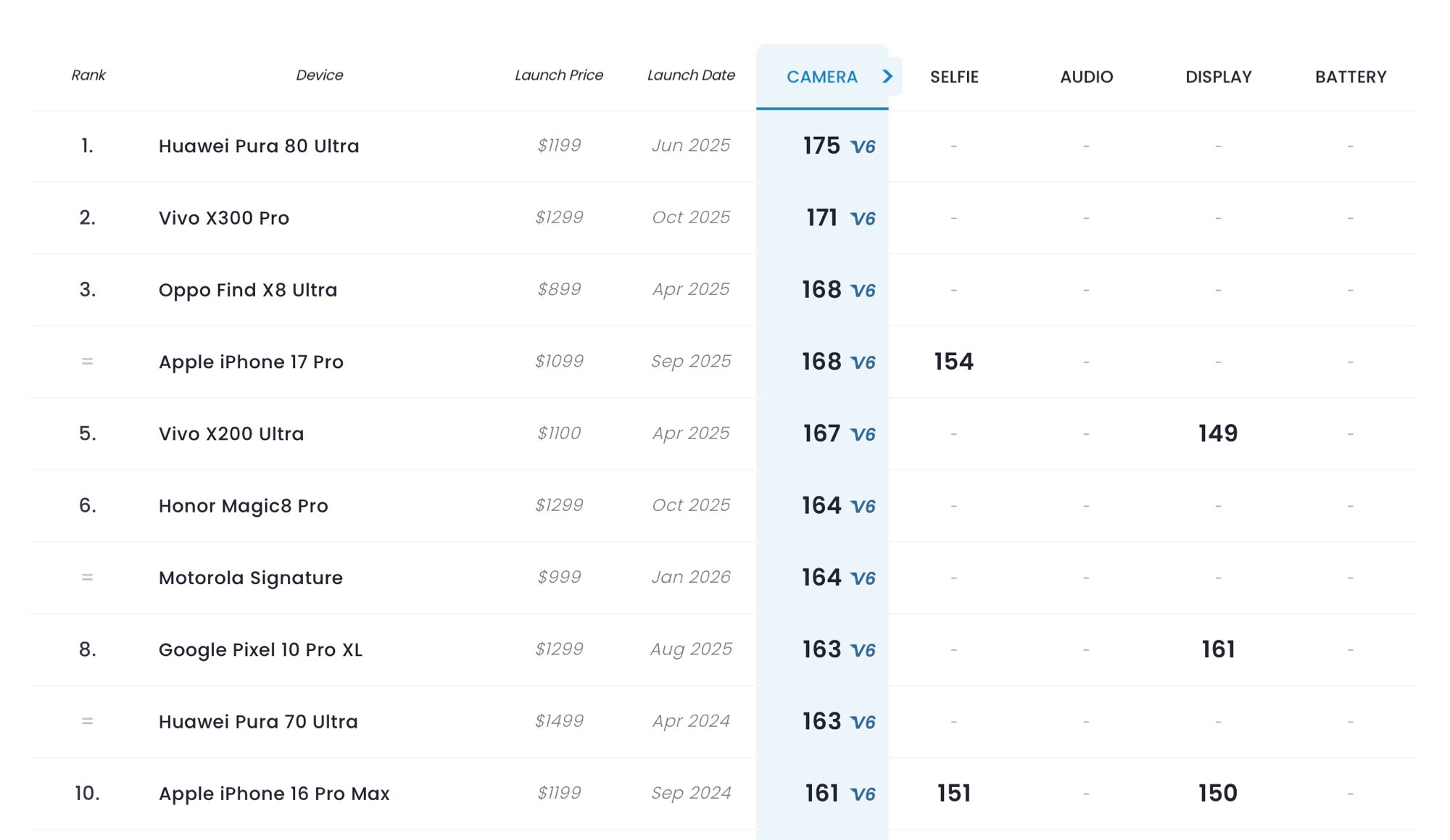 Al lograr una puntuación bastante respetable de 164, el Motorola Signature se coloca sexto en la clasificación general de DxOMark - un puesto por delante del Google Pixel 10 Pro XL y justo por debajo del Apple iPhone 17 Pro. El dispositivo solo mostró pequeñas debilidades durante el análisis de DxOMark, como una exposición incoherente en la captura de vídeo, ruido de imagen en escenas con fuerte iluminación de fondo y cierta pérdida de detalle con el zoom 2x debido a su dependencia de la ampliación digital.
