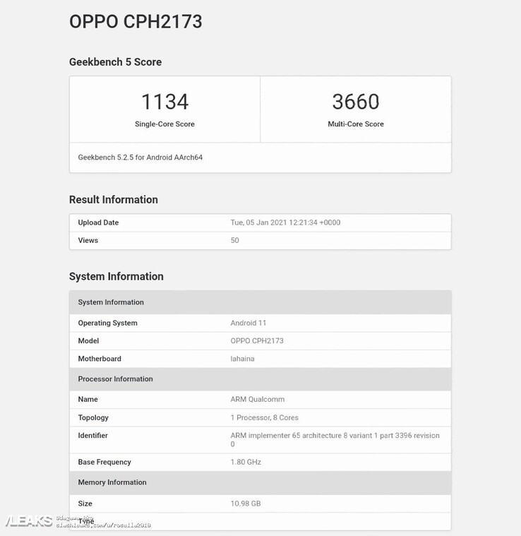 SlashLeaks ahora afirma que un dispositivo llamado la OPPO CPH2173 que ha encontrado en Geekbench 5 es el X3. Esto se debe probablemente a su plataforma lahaina, un nombre en código firmemente asociado con el 888 en esta etapa. Sin embargo, a pesar de que se ha informado que el AnTuTu destruye más de 770.000 puntos, el teléfono no ha obtenido más de 1134 y 3660 puntos en un solo núcleo y en varios núcleos respectivamente.
