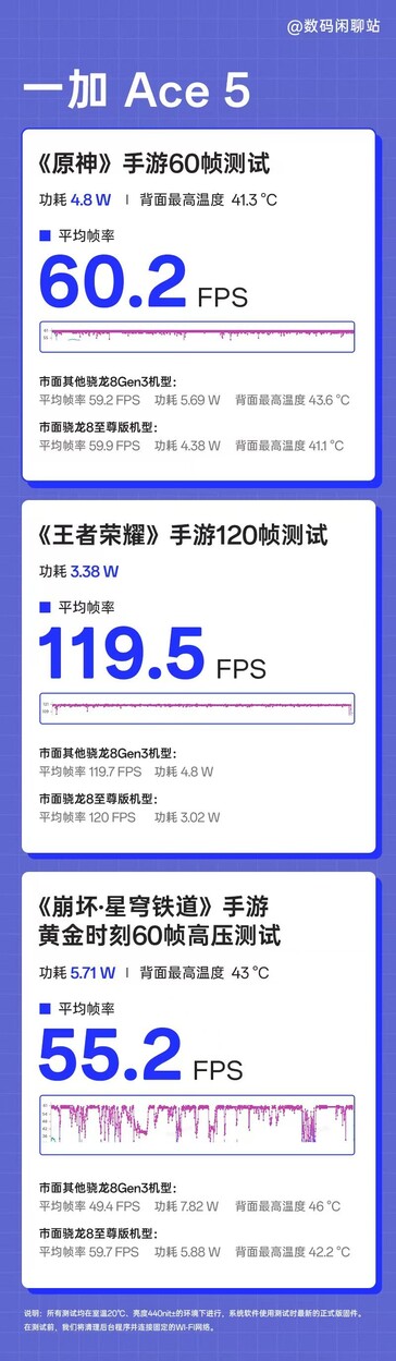 Su eficiencia energética -de 5,7 W en Genshin Impact y 4,8 W y Honkai Star Rail, pero de sólo 3,38 W en Honor of Kings - también fue alabada como"muy superior" a la de los rivales del Ace 5 con las mismas supuestas especificaciones.