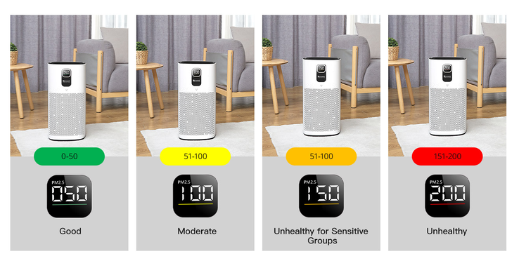 Según Proscenic, el A9 es ideal para una habitación de entre 55 ㎡ y 90 ㎡. También puede purificar hasta 460m³ por hora a través de un sistema de filtración de 4 etapas. A continuación, el Proscenic A9 le indica el grado de limpieza de su aire según el índice de aire PM2.5 de https://www.gov.uk/government/statistics/air-quality-statistics/concentrations-of-particulate-matter-pm10-and-pm25que clasifica de 0 a 200. Puede ver la puntuación de PM2,5 de su habitación en la pantalla integrada o a través de la aplicación Proscenic.