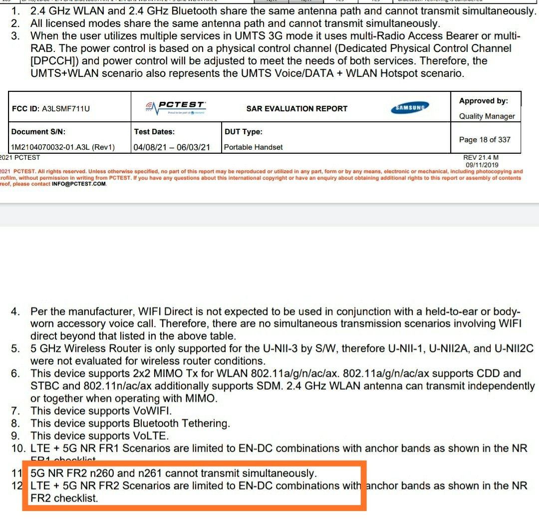 Según un documento de la FCC, el Galaxy Z Flip 3 no puede operar en las bandas n260 y n261 5G mmWave simultáneamente, siendo la n260 la más rápida de las dos. El mismo documento confirma que el teléfono es compatible con las bandas n2, n5, n12, n25, n30, n41, n66, n71, n77 y n78, como referencia.