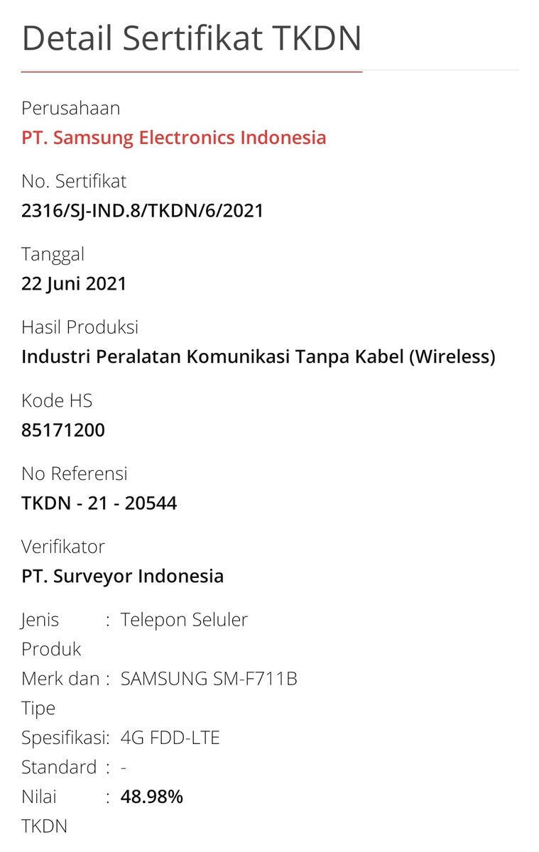 El Galaxy Z Flip 3 no es el único plegable de última generación de Samsung que ha aparecido en varias agencias de certificación esta semana. Tanto éste como el Galaxy Z Fold 3 han aparecido en el sitio web de la FCC, con los números de modelo SM-F711U y SM-F926U, respectivamente. La TKDN de Indonesia también ha certificado el Galaxy Z Flip 3, como muestra la última captura de pantalla.