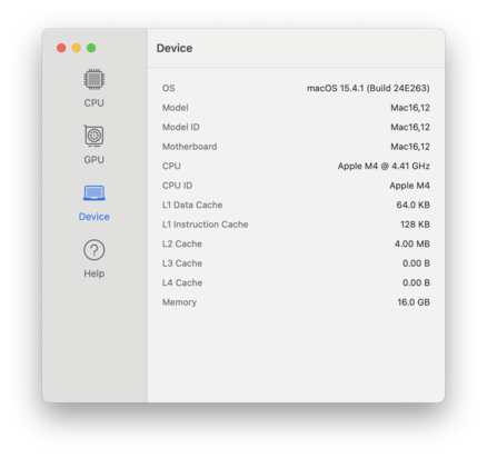 | Medio Apple M4 (10 cores), Apple M4 8-core GPU (n=1) | |