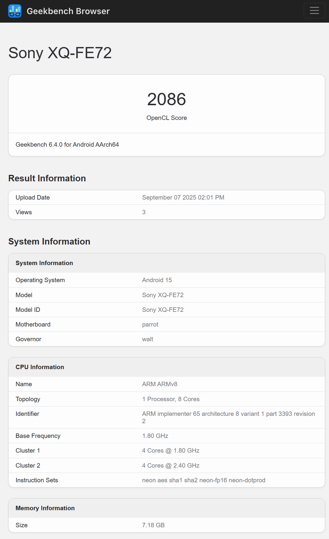 Compartido con el Moto G75 y Galaxy A36 (actualmente 399 $ en Amazon), el Snapdragon 6 Gen 3 ayuda al Xperia 10 VII a superar a su predecesor en un 8% en tareas de un solo núcleo y en menos de un 1% en tareas multinúcleo. Por el contrario, el Xperia 10 VII consigue puntuaciones OpenCL un 58% superiores gracias a su procesador Adreno 710 GPU. Sin embargo, por ahora se ha escapado a las filtraciones una fecha de lanzamiento para el próximo smartphone de gama media de Sony, al igual que el precio de lanzamiento.