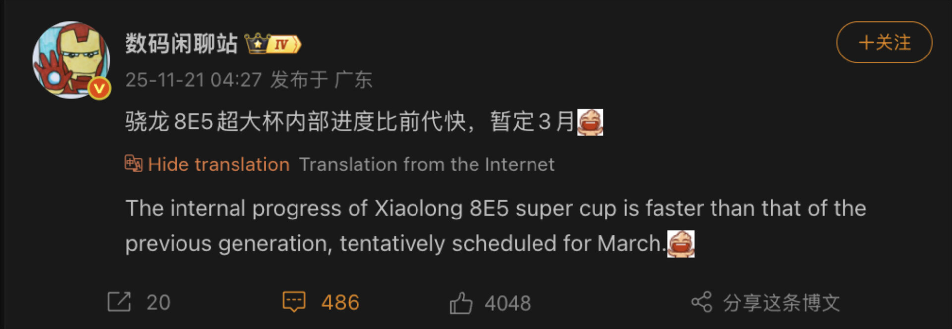 Escribiendo en Weibo, el filtrador afirma que el desarrollo interno del próximo smartphone Ultra de Vivo "avanza más rápido que el de su predecesor". Equipado con un Snapdragon 8 Elite Gen 5 el X300 Ultra está aparentemente "previsto para marzo", es decir, sólo 11 meses después de que el X200 Ultra debutara en China.