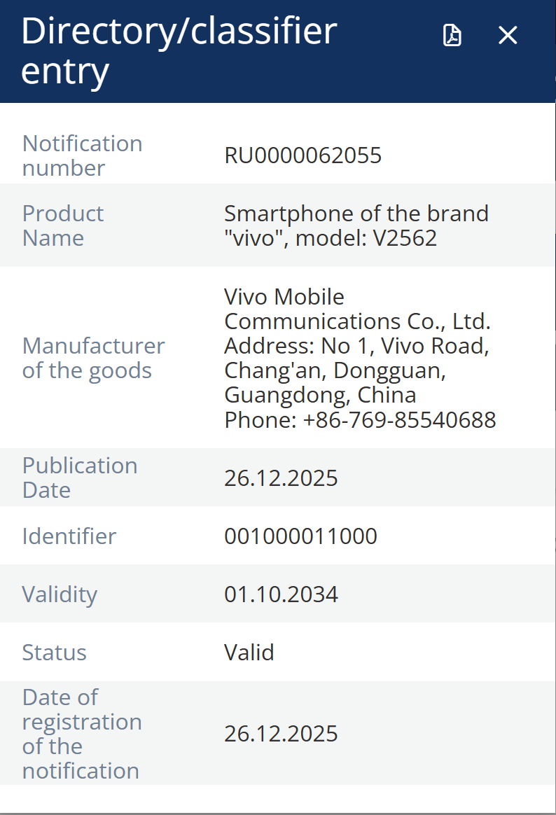 Justo después de Navidad, Vivo certificó un smartphone con el número de modelo V2562 ante la Comisión Económica Euroasiática (CEE). A menudo, una certificación de la CEE por parte de un fabricante importante es una señal segura de que lanzará un dispositivo en lugar de dejarlo languidecer en la sala de corte. Ahora, el mismo dispositivo ha aparecido en la base de datos pública de la TKDN en Indonesia.