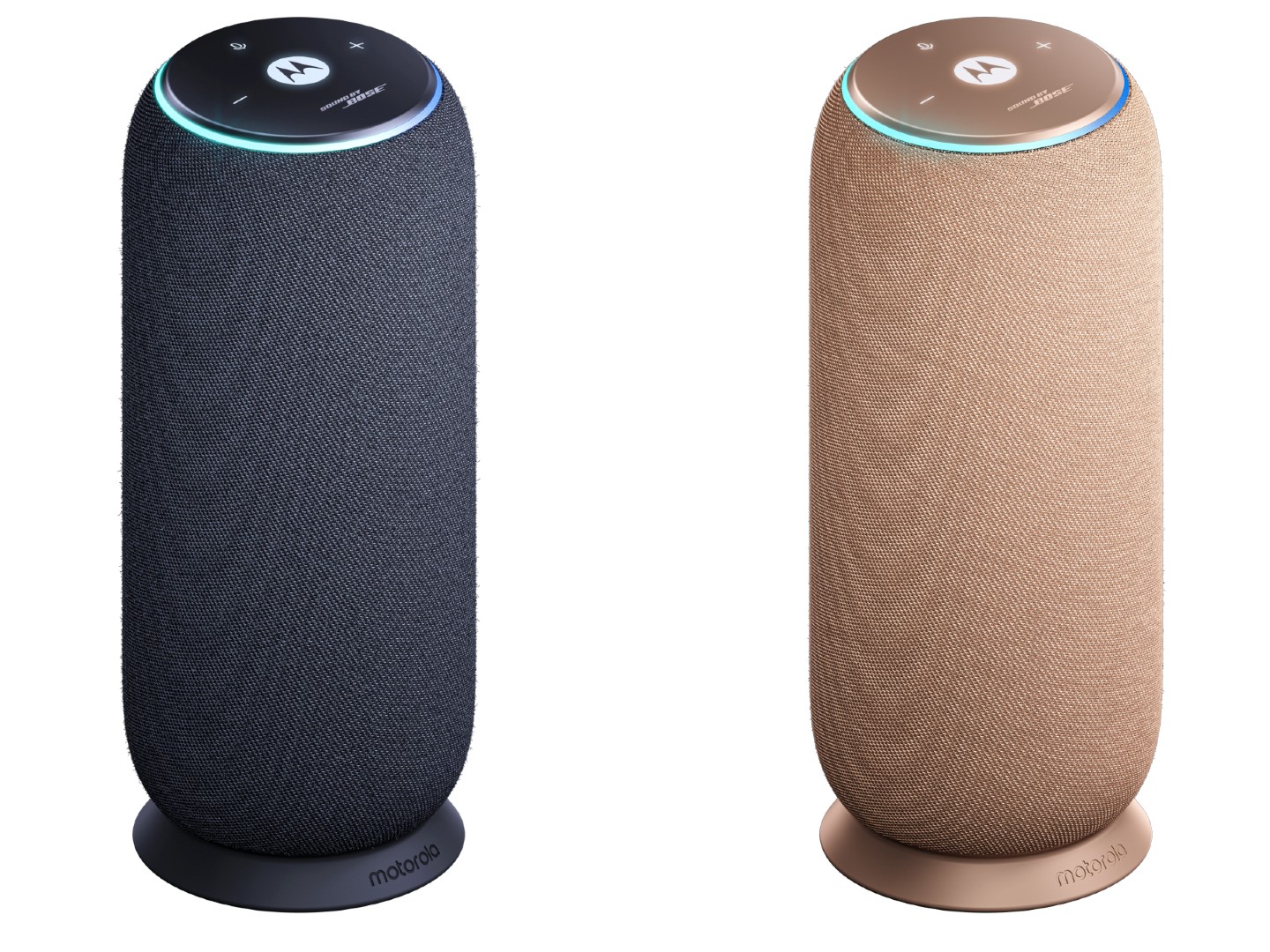 El Moto Sound Flow tiene un diseño cilíndrico alto con una parte superior plana con un anillo LED y una base plana que se asienta sobre una base de carga. Motorola afirma que el altavoz está envuelto en un refinado tejido con textura de sarga, y está disponible en Pantone Carbon (negro) y Pantone Warm Taupe (marrón).
