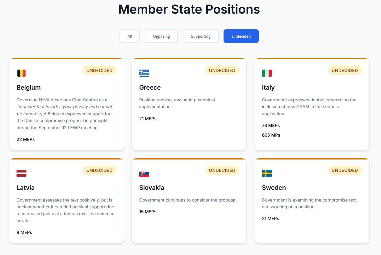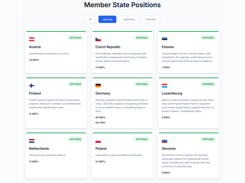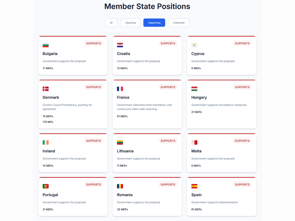Los funcionarios nacionales del Grupo de Trabajo de Aplicación de la Ley del Consejo se reunieron el 12 de noviembre y, según múltiples informes políticos y la cobertura de los medios de comunicación, manifestaron un amplio apoyo a un compromiso revisado liderado por Dinamarca sobre el Reglamento de la UE contra el abuso sexual infantil (a menudo denominado "Control del Chat"). El borrador elimina las órdenes de detección explícitas y obligatorias, pero añade las obligaciones del artículo 4 para las "medidas de mitigación del riesgo". Ahora se espera que este cambio pase al COREPER (los embajadores de los países de la UE, o Comité de Representantes Permanentes) para su consideración