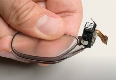La montura de las gafas no puede abrirse sin causar daños, y sustituir una cámara defectuosa o una pantalla defectuosa es probablemente imposible sin conocimientos especializados y herramientas especiales. El vídeo de desmontaje es interesante, entre otras cosas, porque se puede ver en detalle la pantalla de realidad aumentada. Un diminuto proyector con una resolución de 600 x 600 se encuentra en el brazo derecho de las gafas.