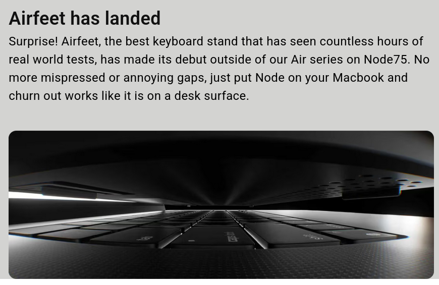 El NuPhy Node75 también tendrá los mismos pies que permiten colocar teclados como el de la serie Air en la parte superior de un teclado MacBook estándar Apple sin accionar las teclas integradas del teclado del portátil.