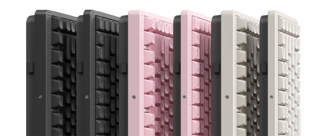 La estética del NuPhy Node75 es a la vez limpia y de inspiración retro, con la barra táctil en la parte superior del teclado que presenta una cuadrícula de puntos y todo el teclado en colores beige, rosa y un gris carbón. Los perfiles nSA y mSA de NuPhy también contribuyen a ese aspecto retro, gracias a su parecido con los perfiles SA clásicos de los antiguos teclados Apple e IBM.