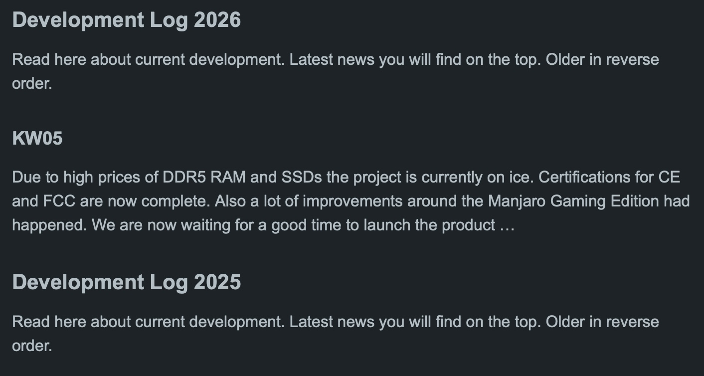 Manjaro Gaming Edition, sin embargo, ha hecho muchos progresos, como reveló philm del equipo Manjaro. También se han concedido las certificaciones CE y FCC del dispositivo portátil para juegos, lo que sin duda es una buena noticia. Parece que si y cuando la cadena de suministro vea mejores días, el proyecto del dispositivo portátil Neo debería estar de nuevo en marcha.