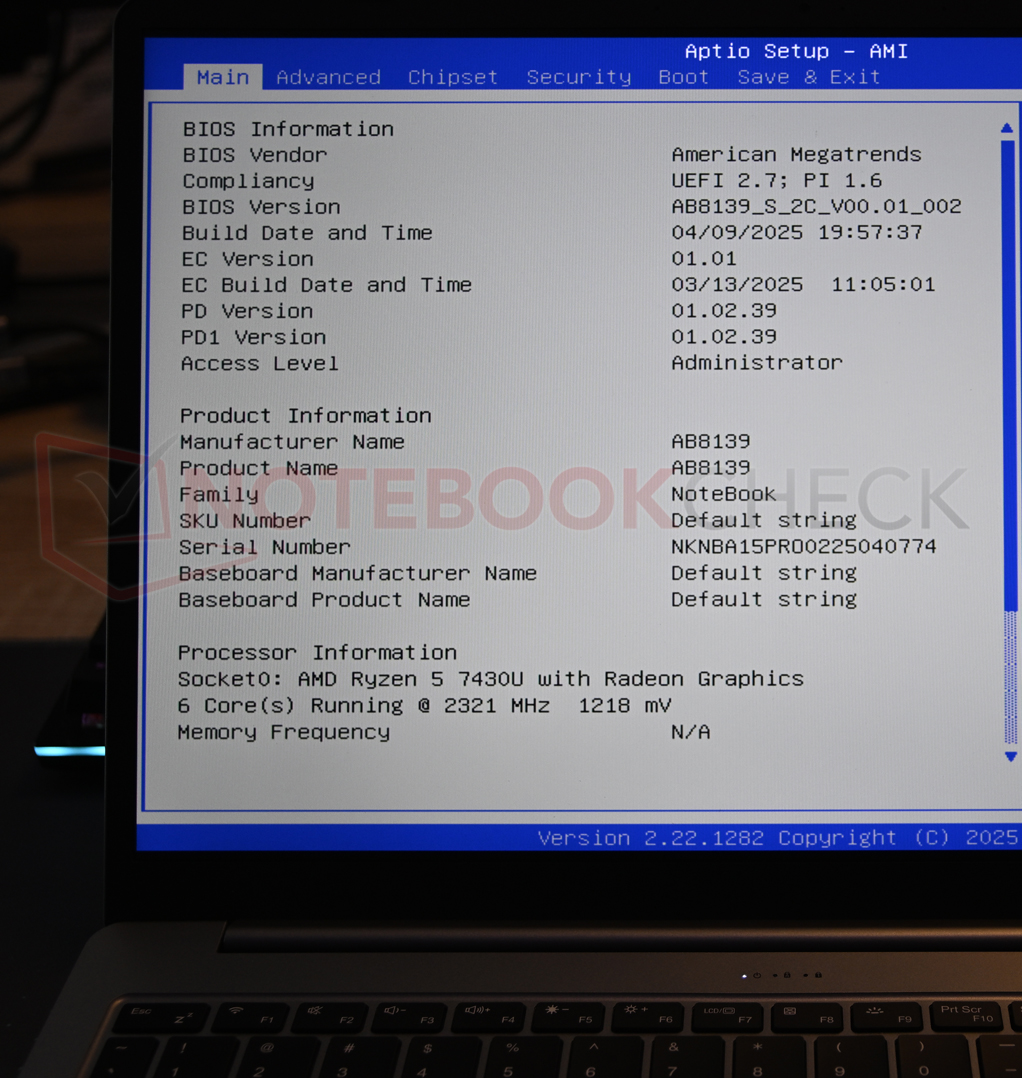 Hasta ahora, hemos comprobado tres portátiles con una supuesta CPU 7430U en busca de una supuesta CPU desviada y la hemos encontrado dos veces (en dos dispositivos/placas base diferentes, del mismo ODM) en el fabricante Chuwi. Hasta el momento, las sospechas en Ninkear no han sido confirmadas, contrariamente a la información mencionada de los usuarios. Sin embargo, no se puede descartar en este momento que los lotes individuales sigan afectados y que la CPU pueda ser diferente - nuestras observaciones de dos dispositivos de diferentes fabricantes con la misma placa base, pero fabricados con una diferencia de hasta un año, son un fuerte indicio de ello.