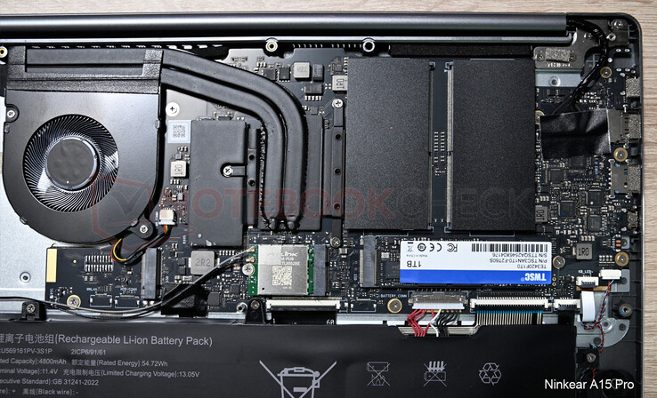 La comparación entre el Ninkear A15 Pro y el Chuwi CoreBook Plus es interesante en el sentido de que ambos portátiles parecen utilizar la misma placa base. La CPU está soldada permanentemente, por lo que no hay posibilidad de que el fabricante realice cambios después de la producción. La marca serigrafiada en la placa base es "EM_AB8139_S_2C_V1.1", que es idéntica en ambos dispositivos y hace referencia al fabricante del diseño original, Emdoor Digital (Shenzhen Emdoor Information Technology). Nuestra muestra de prueba de Chuwi afectada por el fraude de la CPU (CoreBook Plus a partir de marzo de 2026) se fabricó probablemente mucho más tarde que nuestro Ninkear A15 Pro no afectado, cuyo análisis tiene ya casi un año. Por cierto, nuestra Chuwi CoreBook X afectada (EM_AL525_ENE_CW_V3.2) también procede de Emdoor Digital, nuestra revisión de septiembre de 2025.