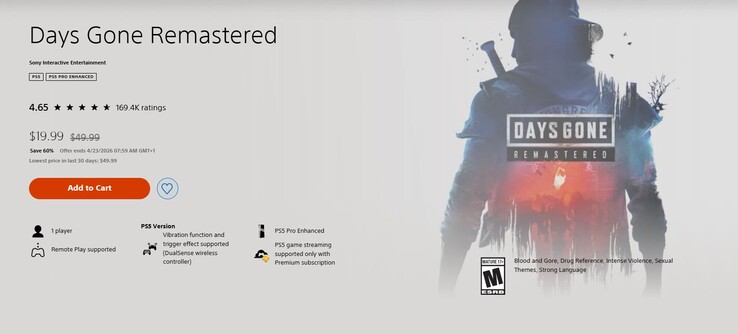 Days Gone Remastered se lanzó a finales de abril de 2025 con un precio de 49,99 $ en PlayStation 5, mientras que los propietarios de la versión para PlayStation 4 pudieron adquirir la actualización por solo 10 $. Ha recibido una serie de descuentos desde entonces, pero el último recorta un 60% ese precio hasta el 23 de abril, con el juego ahora disponible en la PlayStation Store por 19,99 $, el precio más bajo que ha tenido nunca. Teniendo en cuenta que se trata de una exclusiva de PlayStation relativamente reciente, es probable que éste sea también el precio más bajo que tendrá durante un tiempo.