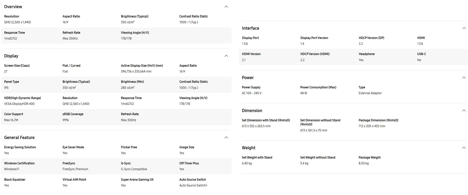 En cuanto a las especificaciones, es idéntico al el modelo chino. En concreto, cuenta con un panel Fast IPS de 27 pulgadas con una resolución de 1440p. Uno de los aspectos más destacados de la pantalla es la frecuencia de refresco de 350 Hz. Emparejado con el tiempo de respuesta GtG nominal de 1 ms, el Odyssey G60F debería ofrecer una experiencia con gran capacidad de respuesta.