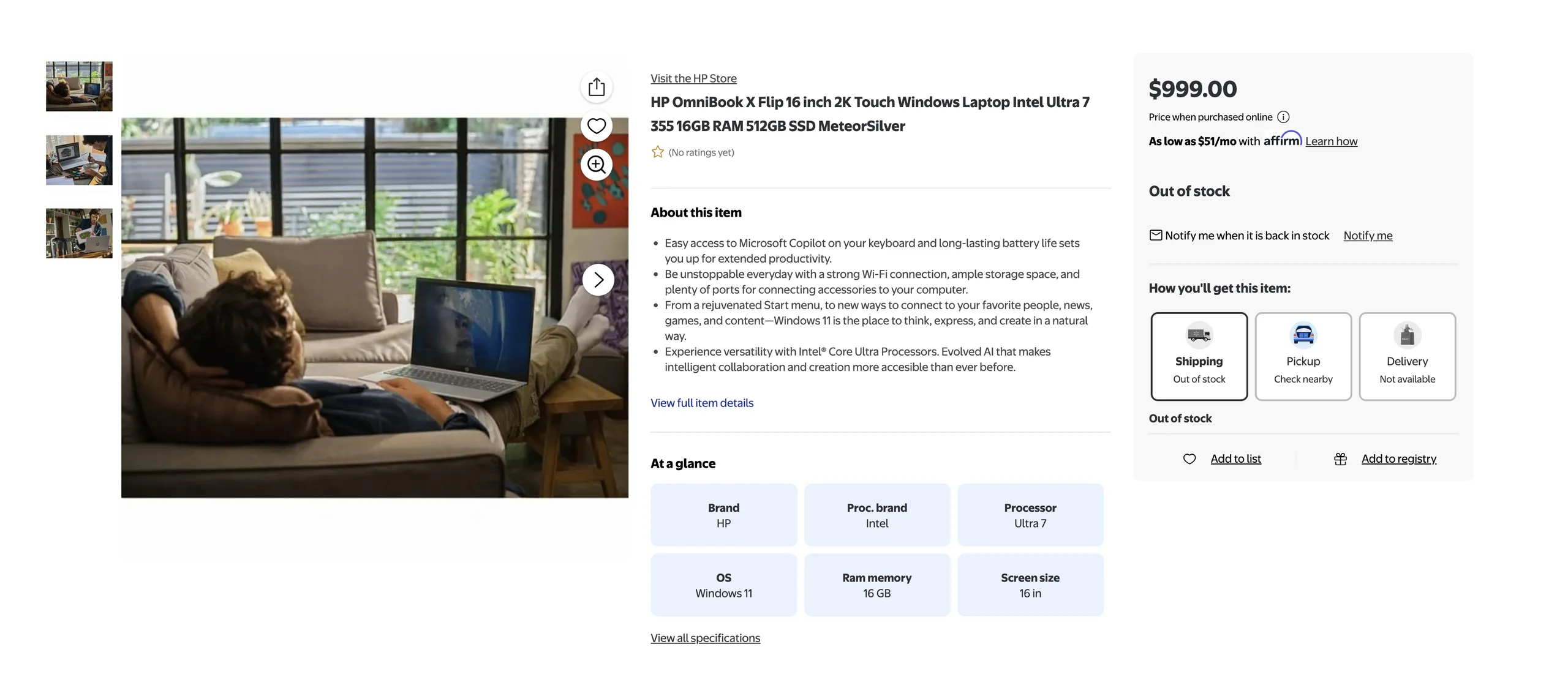El OmniBook X Flip 16 aún no ha cumplido un año. Se anunció en en marzo, el OmniBook X Flip 16 se lanzó junto a toda una serie de otros portátiles OmniBook, entre los que se incluyen de 14 pulgadas y 17.variantes de 3 pulgadas. No obstante, un listado anticipado de Walmart en https://www.walmart.com/ip/HP-OmniBook-X-Flip-16-inch-2K-Touch-Windows-Laptop-Intel-Ultra-7-355-16GB-RAM-512GB-SSD-MeteorSilver/18103472793 indica que HP está a punto de sustituir los modelos basados en Intel Lunar Lake que vende actualmente (actualmente 929,99 dólares en Amazon).