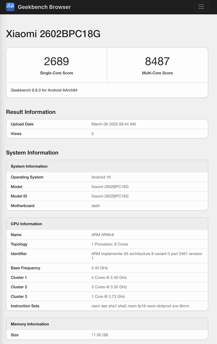 Ahora, esta última variante ha aparecido en múltiples benchmarks tempranos. Denominado Xiaomi 2602BPC18G, el número de modelo ya ha sido vinculado con el nombre de venta al público 'Poco X8 Pro Max'. Por un lado, los listados confirman que Xiaomi planea vender el Poco X8 Pro Max con 12 GB de RAM.