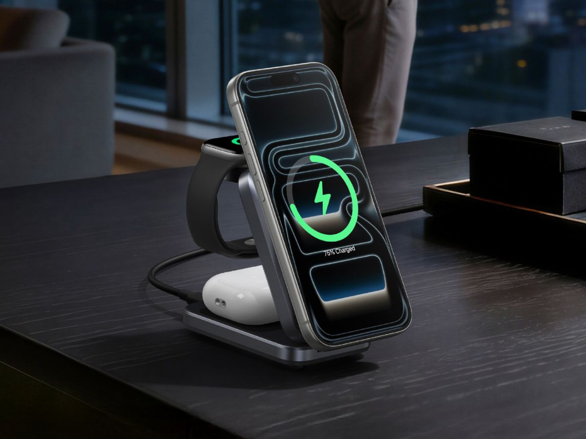 La nueva estación de carga inalámbrica Prime de Anker está diseñada para cargar simultáneamente un teléfono, un Apple Watch y unos auriculares inalámbricos. Para un iPhone o un Google Pixel, hay una almohadilla de carga inalámbrica Qi 2.2, que proporciona hasta 25 W de potencia. Esta se asienta en la mitad superior del accesorio, que puede inclinarse hasta 60°, lo que permite a los usuarios acceder a otras dos almohadillas de carga inalámbrica situadas debajo. En la base se encuentra el cargador más grande, diseñado para una funda de auriculares, con una potencia de hasta 5W. Detrás de la sección superior del cargador se encuentra un cargador extraíble para Apple Watch, que también ofrece una potencia de 5 W de forma inalámbrica.