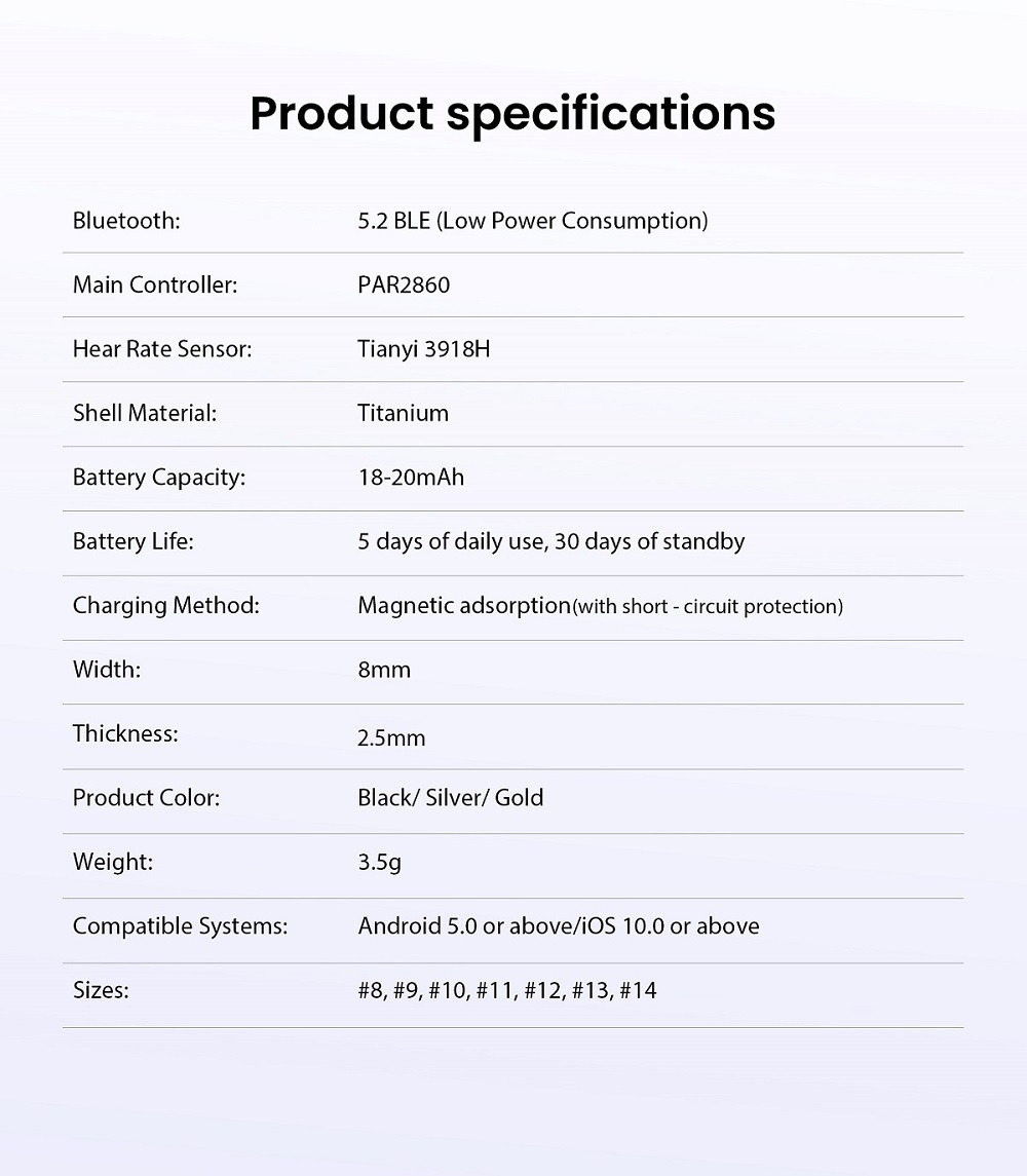 A medida que los anillos inteligentes se generalizan, Rogbid presenta otro nuevo contendiente en este espacio: el SR16. Este anillo inteligente es la continuación del SR08 Ultray del más reciente SR10, con el que la empresa afirma haber mejorado la durabilidad, actualizado los sensores y rediseñado la interfaz de la pantalla con respecto a sus predecesores. El wearable tiene cuerpo de titanio, pesa 3,5 gramos y mide 8 mm de ancho con un grosor de 2,5 mm.