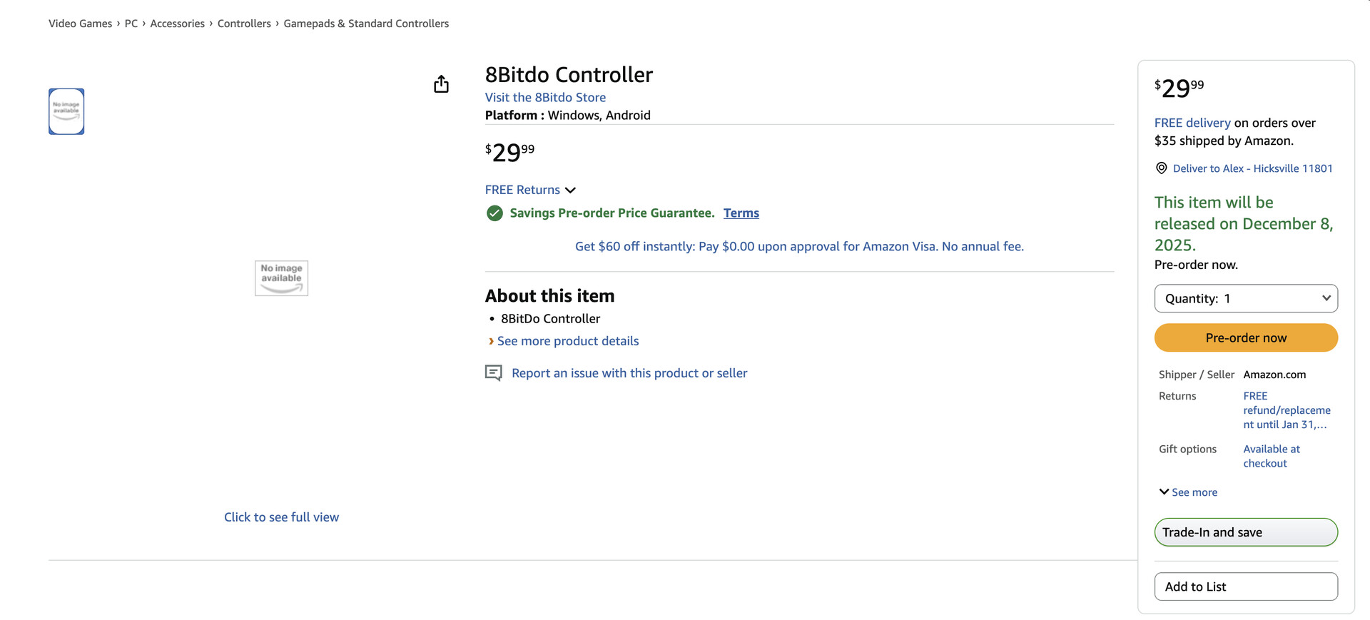 Parece que 8BitDo tiene en proyecto al menos un nuevo mando inalámbrico antes de que lleguen las Navidades. Para contextualizar, la empresa celebró el 40 aniversario de la NES el mes pasado con varios dispositivos de edición limitada, incluido un mando Bluetooth Ultimate 2 temático. Ahora la cuenta X Wario64 ha proporcionado un primer vistazo a lo que simplemente se denomina "8BitDo Controller" en Amazon.