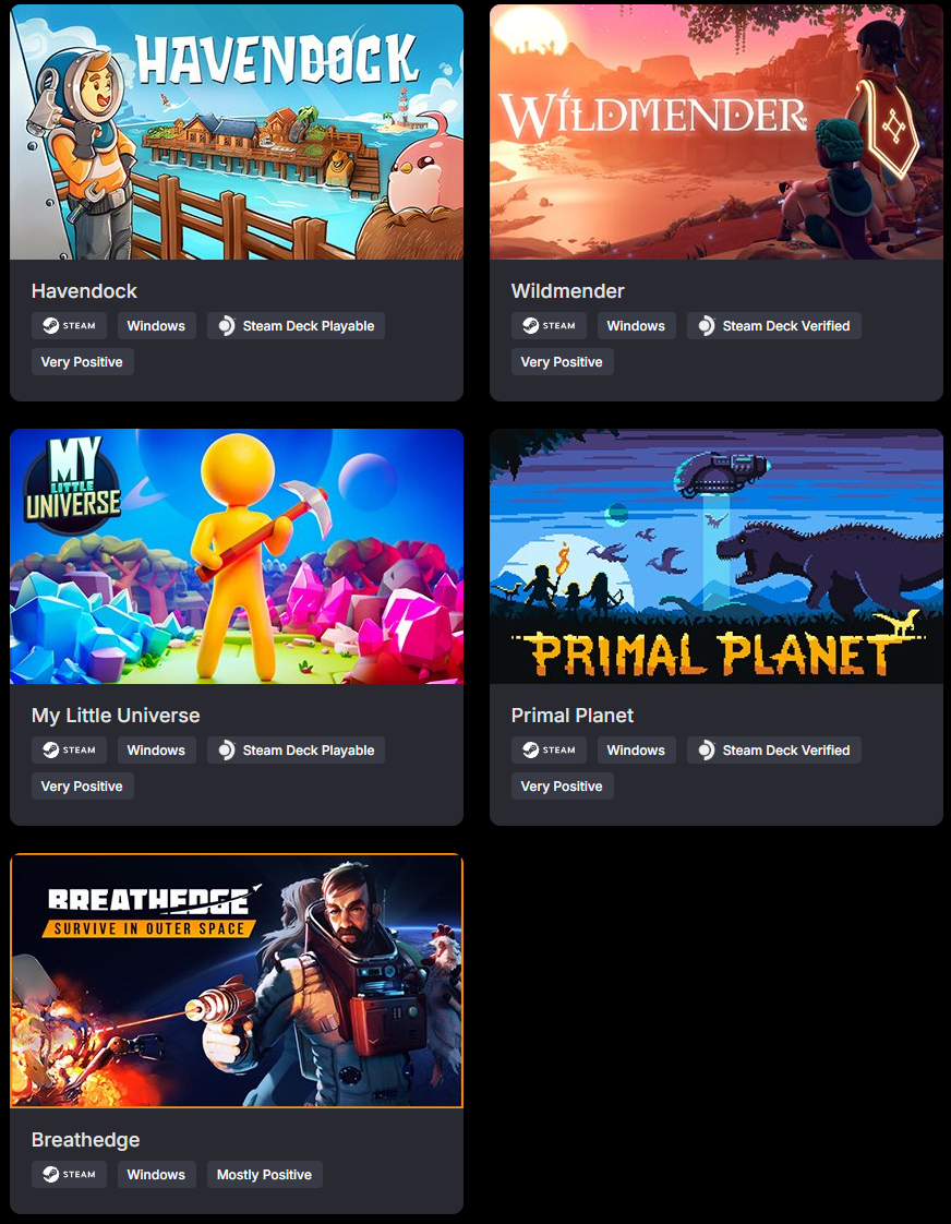 - Wildmender - categorizado como Steam Deck Verified, se trata de un juego de jardinería bien valorado con elementos de supervivencia integrados. Tiene un precio de venta al público de 24,99 $, y el mínimo histórico es de 9,99 $.