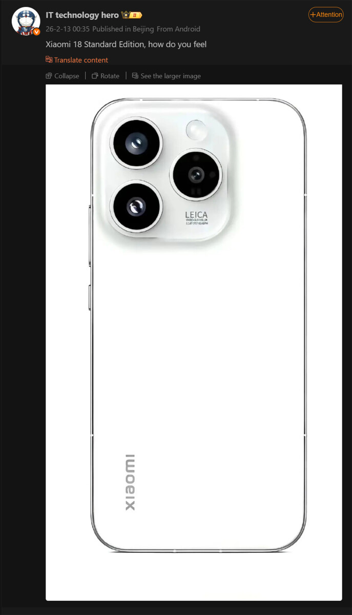 El nuevo rediseño del Xiaomi 18 se revela con una carcasa de cámara Leica inspirada en el iPhone