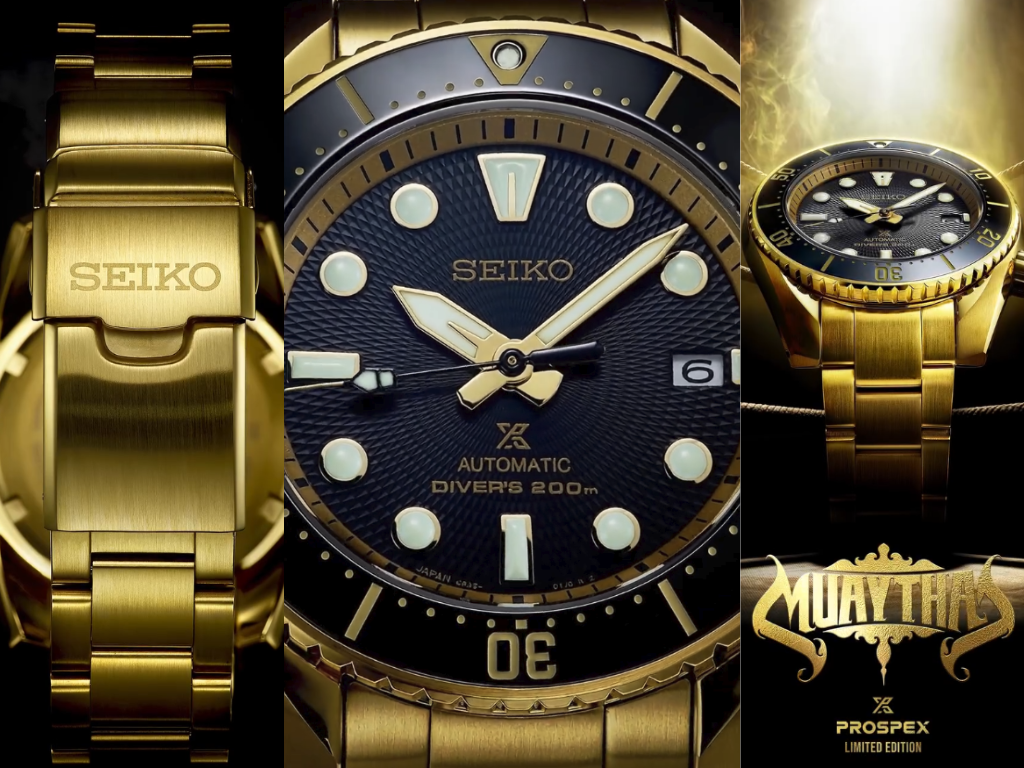 Seiko Tailandia ha desvelado por completo el Prospex Muay Thai Edición Limitada que bromeó anteriormentey el reloj final resulta ser un atrevido diver totalmente dorado construido en torno a una esfera negra texturizada y un brazalete dorado a juego.