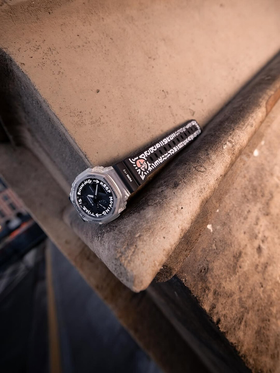 Casio y la agencia creativa francesa Lorem se han unido para un lanzamiento de edición limitada llamado "Time Run", con visuales de arte callejero sobre la reconocible geometría de lo que parece ser la serie G-Shock GM-2100 o la línea GA-2100, siendo esta última la más probable. La entrega consiste en sólo 24 relojes numerados para 24 ganadores elegidos a lo largo de una única campaña de 24 horas.