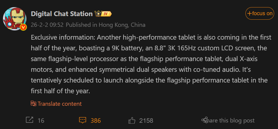 Digital Chat Station, un fiable tipster de Weibo, ha compartido un informe sobre una tableta de alto rendimiento para juegos que se lanzará en el H1 (primer semestre) de 2026. Al parecer, será un rival de la próxima tableta 2026 Legion, de la que Lenovo se ha burlado recientemente.