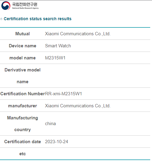 Un nuevo smartwatch Redmi ha sido certificado por la Agencia Nacional de Investigación Radiofónica (NRRA) de Corea y la Comisión Económica Euroasiática (EEC), una rama de la Unión Económica Euroasiática (UEE). El wearable tiene el número de modelo M2315W1 y cuenta con Bluetooth; por el momento no se ha revelado más información sobre el dispositivo.