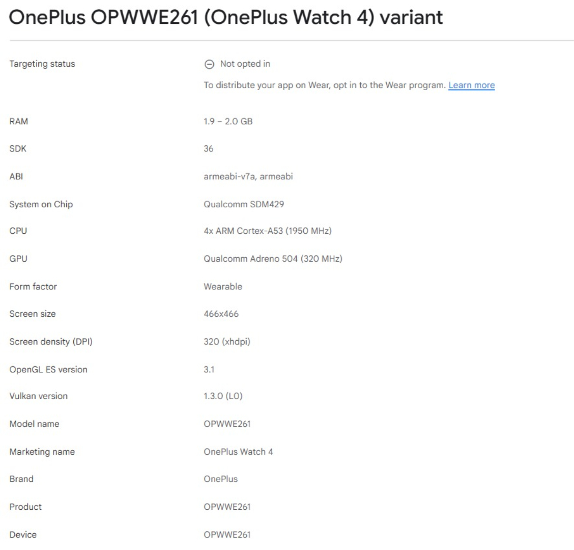 Ahora, este último ha aparecido en la consola Google Play con el mismo número de modelo y nombre comercial que la filtración de la semana pasada. Aunque la filtración no revela cuándo estará disponible el OnePlus Watch 4, sí esboza múltiples especificaciones antes del lanzamiento oficial del smartwatch.