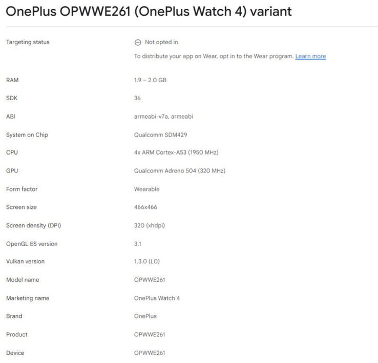 Por desgracia, sugerencias anteriores de que OnePlus ha trasladado el hardware del antiguo Watch 3 eran ciertas (actualmente cuesta 249,99 dólares en Amazon). Por ejemplo, la consola de Google Play indica que el Watch 4 combina 2 GB de RAM con el procesador de Qualcomm Snapdragon W5 Gen 1 de Qualcomm en lugar del más reciente Snapdragon Wear Elite.
