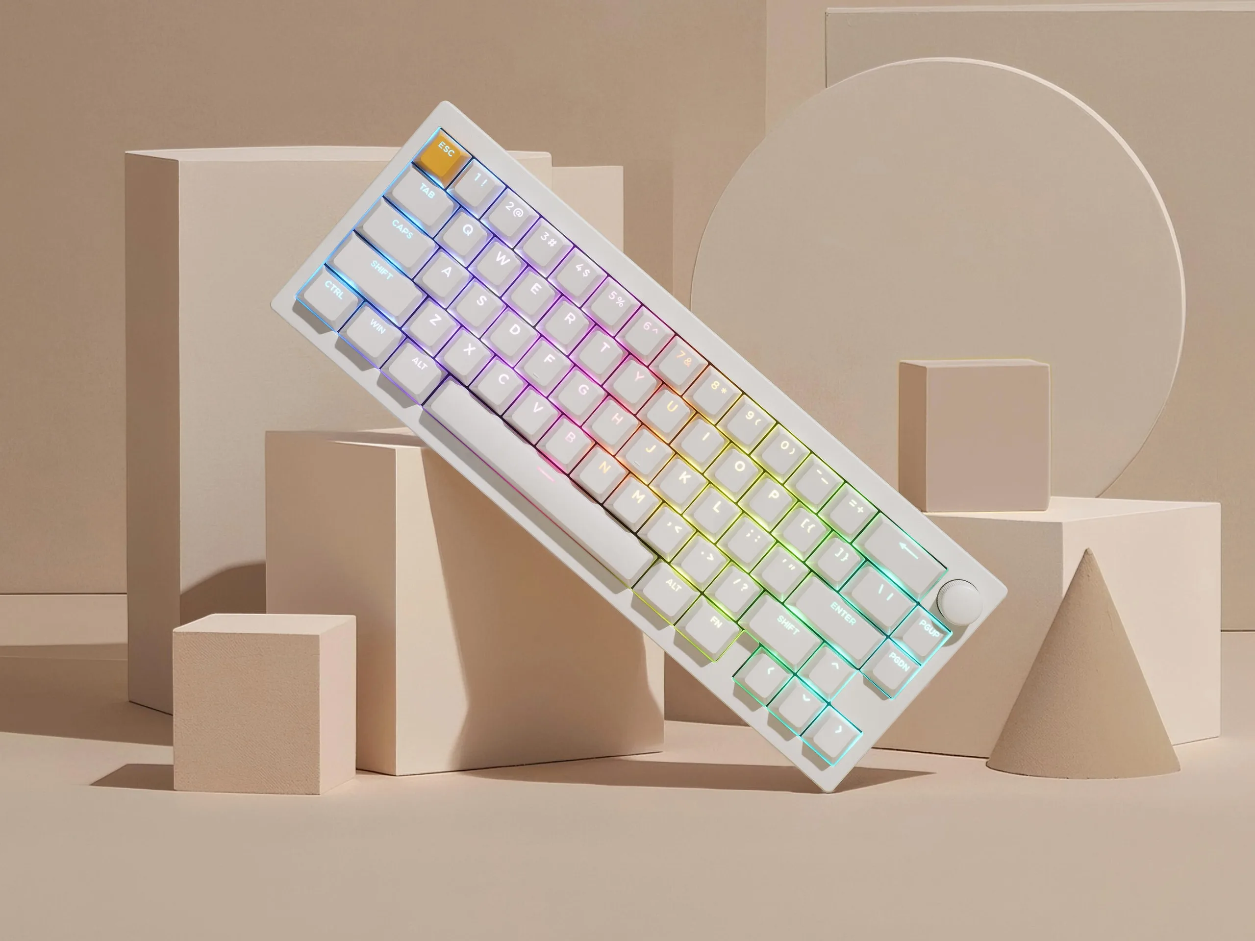 El Lemokey P2 HE presenta una disposición compacta del 65%, con un botón de volumen personalizable, aunque hay cierto espacio entre las teclas modificadoras de la fila inferior y el grupo de flechas, por lo que probablemente será más fácil acostumbrarse que a la disposición compacta adecuada con la que luchamos en nuestro Análisis del Lofree Flow Lite. Otro aspecto destacado del P2 HE es que viene equipado con las familiares teclas de perfil Cherry fabricadas en PBT de doble disparo. Lemokey ofrece el P2 HE en colores blanco y negro, y ambas opciones vienen con una opción de teclas de brillo transparente, que combina bien con la retroiluminación RGB por tecla orientada hacia el norte.