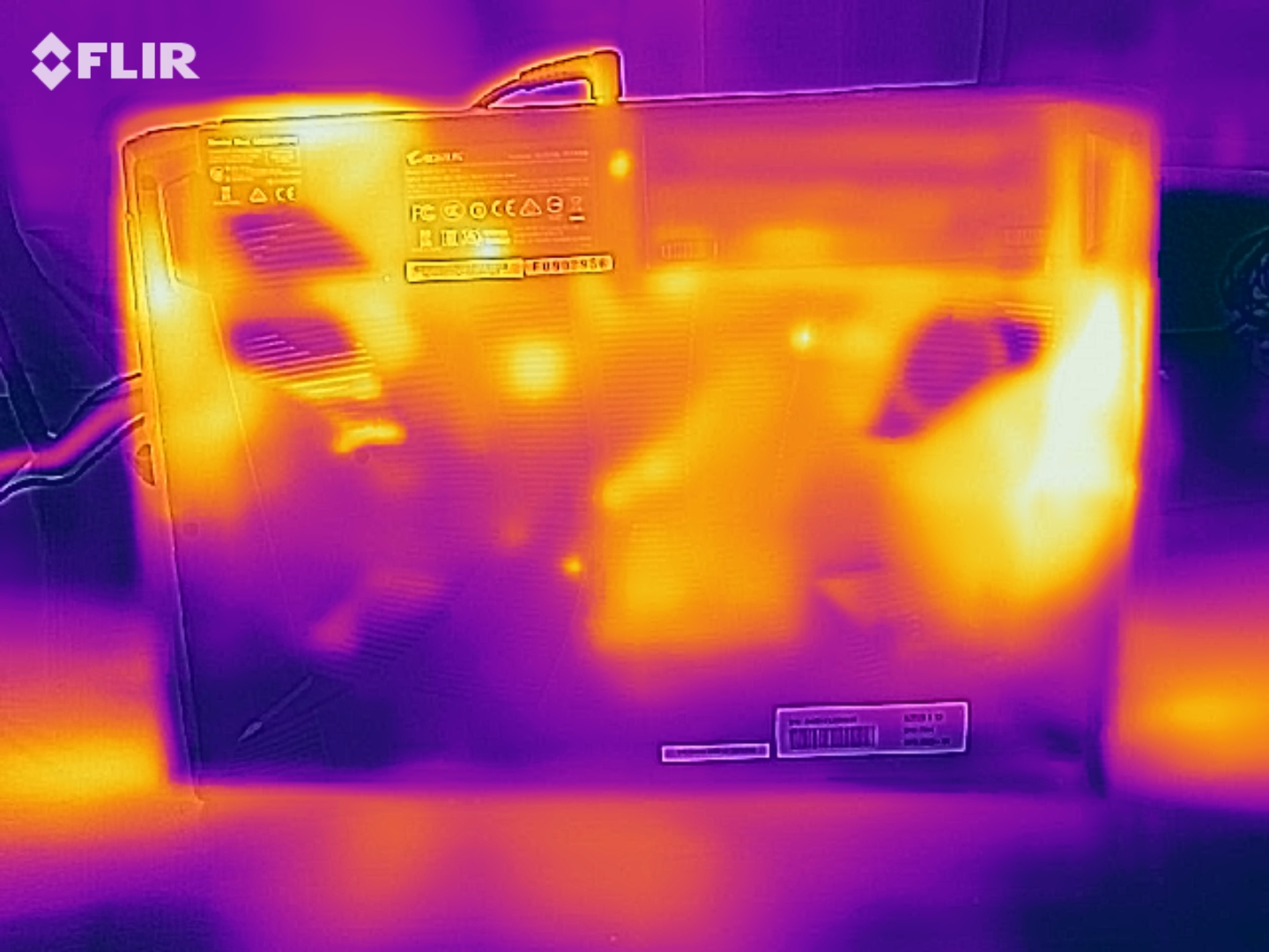 En nuestra prueba de carga completa, las temperaturas de la superficie del Aorus 5 subieron hasta 50 °C. Como resultado, el portátil se siente significativamente caliente y ya no puede ser colocado cómodamente en el regazo, por ejemplo.