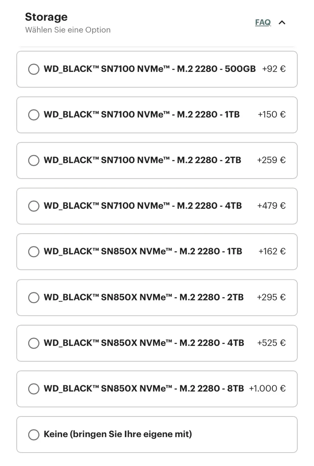 Framework cobra ahora 92 euros por una unidad SSD de 500 GB, 150 euros por una de 1 TB y la friolera de 259 euros por una de 2 TB. Esto supone un aumento de entre 13 y 35 euros, dependiendo de la capacidad. Actualmente es bastante más barato comprar la unidad SSD por separado que directamente a Framework, ya que la misma unidad SSD WD Black SN7100 M.2 cuesta sólo 64 euros en Amazon con una capacidad de 500 GB, la versión de 1 TB se ofrece por 109 euros y el modelo de 2 TB por 190 euros