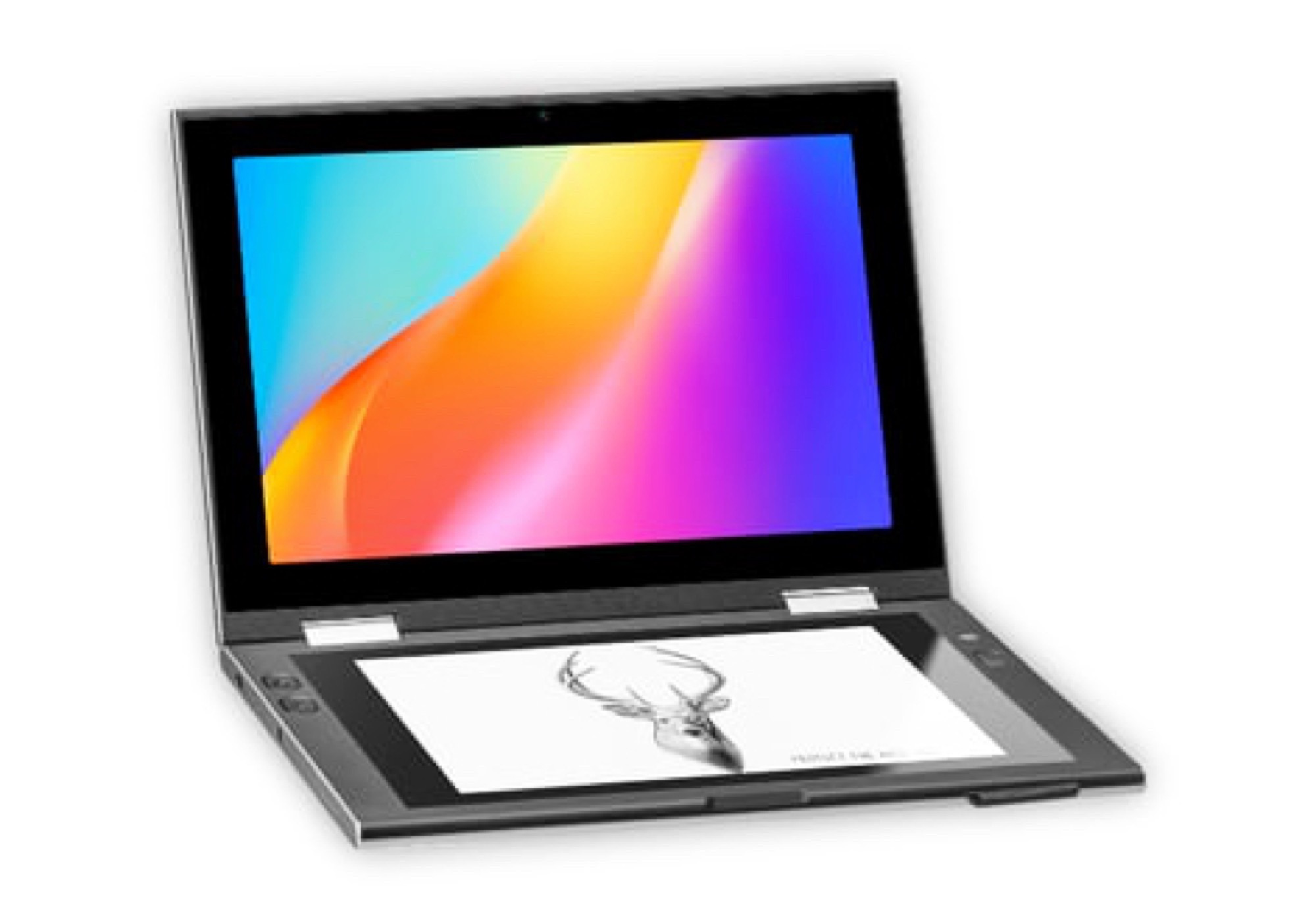 El nuevo OkPad combina dos pantallas relativamente pequeñas en un portátil compacto de doble pantalla, incluyendo una pantalla E Ink de 7,8 pulgadas con una resolución de 1.872 x 1.404. Aunque este panel sólo puede mostrar escala de grises, apenas consume energía y sigue siendo perfectamente legible bajo la luz directa del sol.
