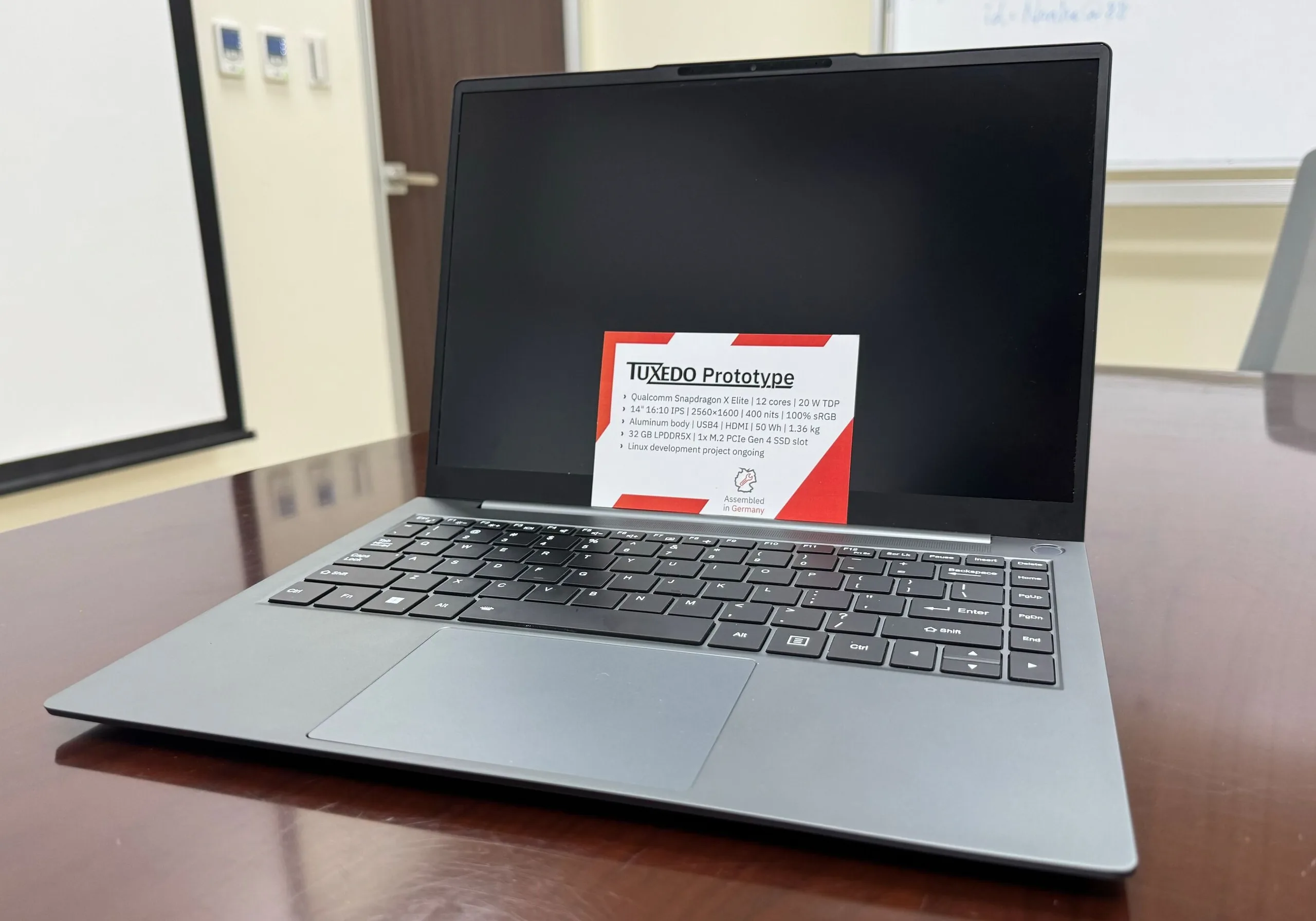 Tuxedo, filial de XMG / Schenker, planea lanzar el primer portátil del mundo basado en Linux y alimentado por el eficiente Snapdragon X Elite a finales de 2024. El fabricante alemán de portátiles mostró recientemente un prototipo en Computex '24, pero en realidad Linux no se ejecutaba en él, ya que se espera que la compatibilidad total con los nuevos procesadores Snapdragon sólo esté disponible en Linux 6.11 que se lanzará en 2H '24.